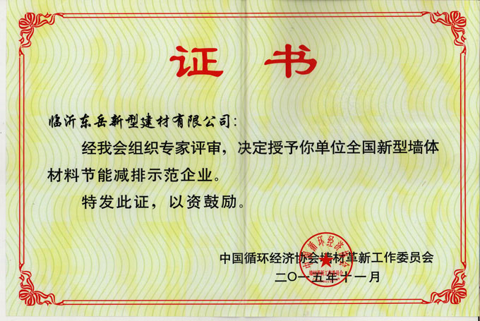 11月12日~13日,全國墻材革新工作委員會在廣東佛山組織召開了2015年年會。會上、臨沂東岳新型建材有限公司等第一批145家企業(yè)受到全國墻材革新工作委員會的通報表彰,被授予全國新型墻體材料節(jié)能減排示范企業(yè),東岳建材作為示范企業(yè)代表進行發(fā)言,交流了經(jīng)驗。