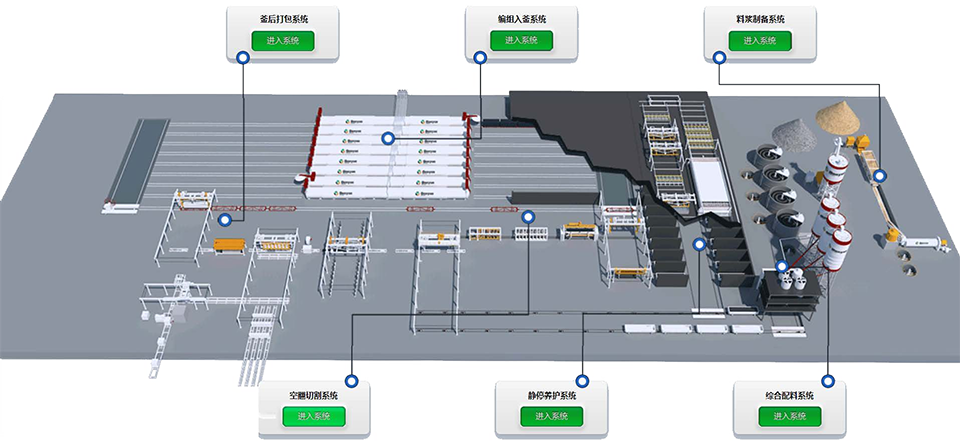 料漿、膠結(jié)料、石膏和鋁粉都分別通過(guò)相應(yīng)自動(dòng)計(jì)量稱計(jì)量,后在攪拌機(jī)內(nèi)高速攪拌,澆注到模箱后進(jìn)行氣泡梳理。整個(gè)體系由 PLC 系統(tǒng)進(jìn)行自動(dòng)控制,保證工序的精確和高效。