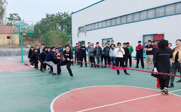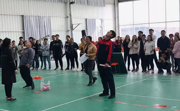 趣味運(yùn)動(dòng)會(huì)共設(shè)5項(xiàng)比賽項(xiàng)目:籃球?qū)官?、貪吃蛇、趣味接力賽、一圈到底、拔河比賽,參賽人員共150人,東岳機(jī)械董事長孫春義到場致辭,并為參賽人員加油打氣,運(yùn)動(dòng)會(huì)本著友誼第一,比賽第二、公平、公正的原則。從運(yùn)動(dòng)會(huì)開始到結(jié)束,參賽的每一名運(yùn)動(dòng)員、每一個(gè)團(tuán)隊(duì)都牽動(dòng)著在場員工的心弦。同呼吸,共命運(yùn),不拋棄,不放棄,彼此加油、歡呼、喝彩。現(xiàn)場歡聲笑語此起彼伏。